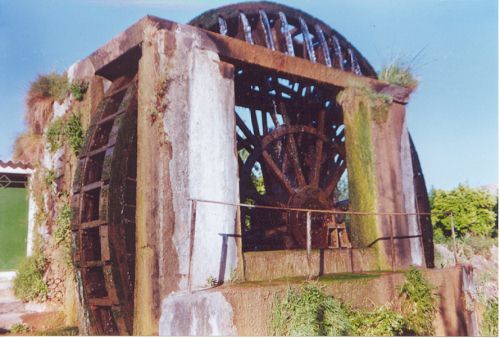 Construida en madera. Eje y platos de hierro dulce. Rendimiento de unos 25