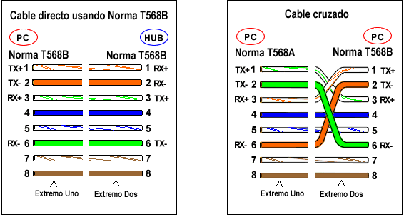 hub con switch, router, etc. Un cable cruzado es aquel donde en los extremos la