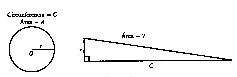 Supongamos que A>T; es decir, A-T>0. Podemos inscribir un polígono en la circunferencia de forma que la diferencia entre sus áreas sea tan pequeña como queramos. Por tanto, existe un polígono inscrito en la circunferencia cuya área es S y tal que A-S<A-T. Sumando S+T-A en cada miembro nos queda que T<S. Por otro lado, también es cierto que S<T porque (P*a)/2 es menor que (C*r)/2, lo cual conduce a una contradicción y A no puede ser mayor que T. De forma análoga se demuestra que T no puede ser mayor que A. Y utilizando las palabras de Arquímedes: "Puesto que entonces el área del círculo no es ni mayor ni menor que el área del triángulo, es igual a ella" q.e.d.
