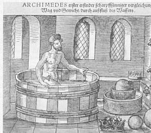 Sumergiendo la corona en agua pudo determinar su volumen (el del