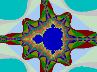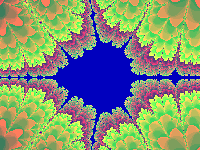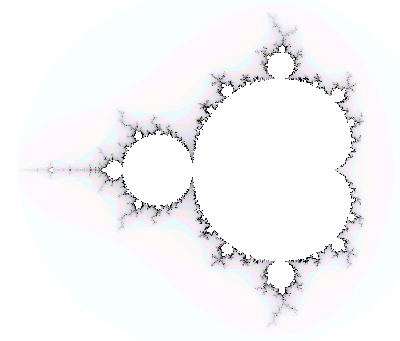 Muchos científicos exploraban ecuaciones que creaban ecuaciones fractales. La imagen fractal más famosa es también una de las más simples. Es también conocida como el conjunto de Mandelbrot (imágenes del conjunto de Mandelbrot). La ecuación es simple: z = z2+c. Para ver si un punto es parte del conjunto de Mandelbrot, simplemente toma un número complejo z. Elévalo al cuadrado, y súmalo al número original. Eleve al cuadrado el resultado, y súmalo al número original. Repite esto hasta el infinito, y si los números que obtienes tienden a infinito, no es parte del conjunto de Mandelbrot. Si se mantienen por debajo de un cierto nivel, es parte del conjunto de Mandelbrot. El conjunto de Mandelbrot es la sección más interna del dibujo, y cada distinta sombra gris representa lo alejado que está ese punto en particular. Una característica interesante del conjunto de Mandelbrot es que los montículos circulares encajan con el gráfico de bifurcación. El fractal de Mandelbrot tiene la misma auto-similitud vista en las otras ecuaciones. De hecho, ampliando en profundidad lo suficiente un fractal de Mandelbrot finalmente aparecerá una réplica exacta del conjunto de Mandelbrot, perfecto en cada detalle.