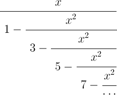Proposición 1: Sea x un número racional. Entonces la tangente de x puede expresarse como fracción continua de la siguiente forma: