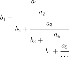 Proposición 2: Si tenemos una fracción continua como la de abajo en la que ai, bi son números enteros tales que ai · bi ≠ 0 para todo i ≥ 1;