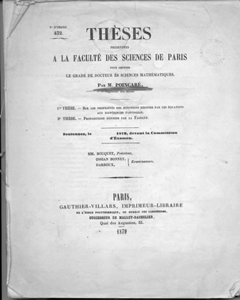Jules-Henri Poincaré nació en Nancy en 1854, en una familia de clase media alta muy ligada a la universidad y a la administración, algo más frecuente en Francia que en España. Su padre fue profesor de universidad además de médico, y su primo Raymond, varias veces primer ministro, llegó a presidente de la República durante la Primera Guerra Mundial. El joven Henri destaca ya en el liceo, gana un premio nacional e ingresa en 1873 en la Escuela Politécnica con el número uno, ingresando también en la Escuela Normal. Escoge la primera y una anécdota, tal vez apócrifa, lo muestra contestando al reproche que le hace un profesor de estar distraído con la repetición al pie de la letra de lo dicho por éste durante los últimos minutos. Tras trabajar como ingeniero por poco tiempo, presenta su tesis doctoral en matemáticas en 1879, mientras escribe una novela que no llega a terminar, enseña otro poco en Caen y en 1881 es nombrado profesor en París, de donde ya no se moverá. Allí muere demasiado joven, tras una intervención quirúrgica, en 1912.